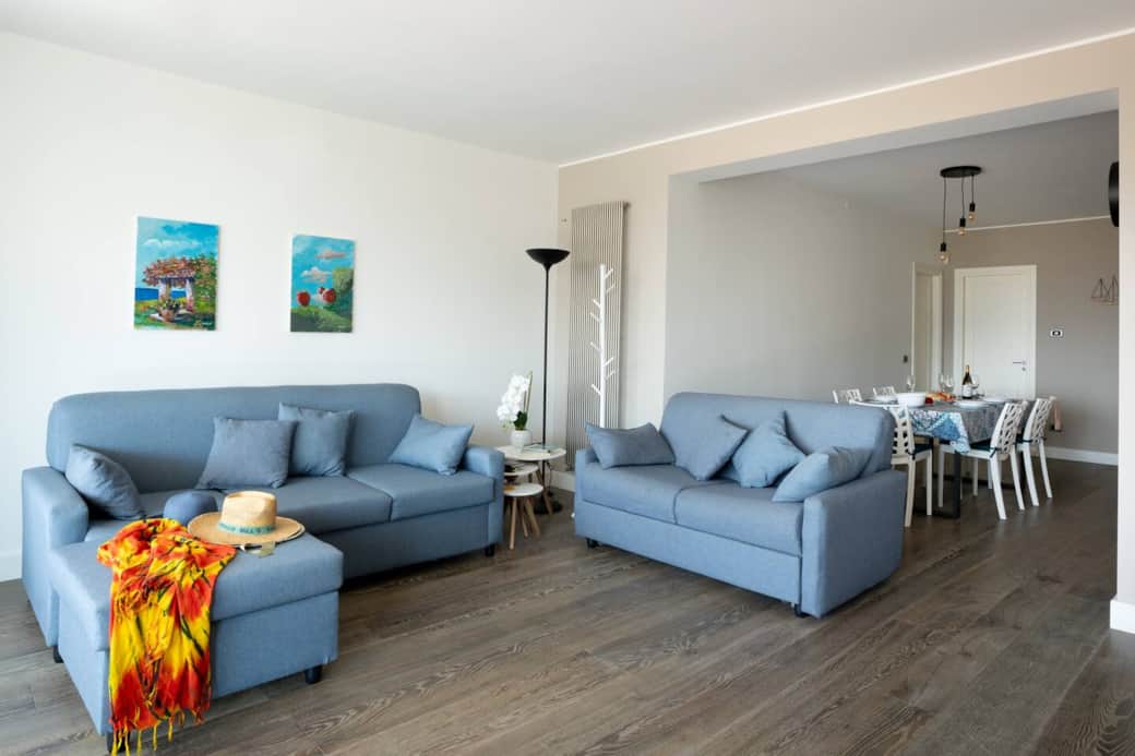 With over 120 m² of space and elegant wooden floors, the apartment offers every comfort: a 30 m² terrace with deckchairs and extendable table for relaxing moments; a large veranda with soundproof glass, air conditioning, a sofa bed, and a 55" Smart TV. The fully equipped kitchen is perfect for meals enjoyed indoors or on the terrace.Parking