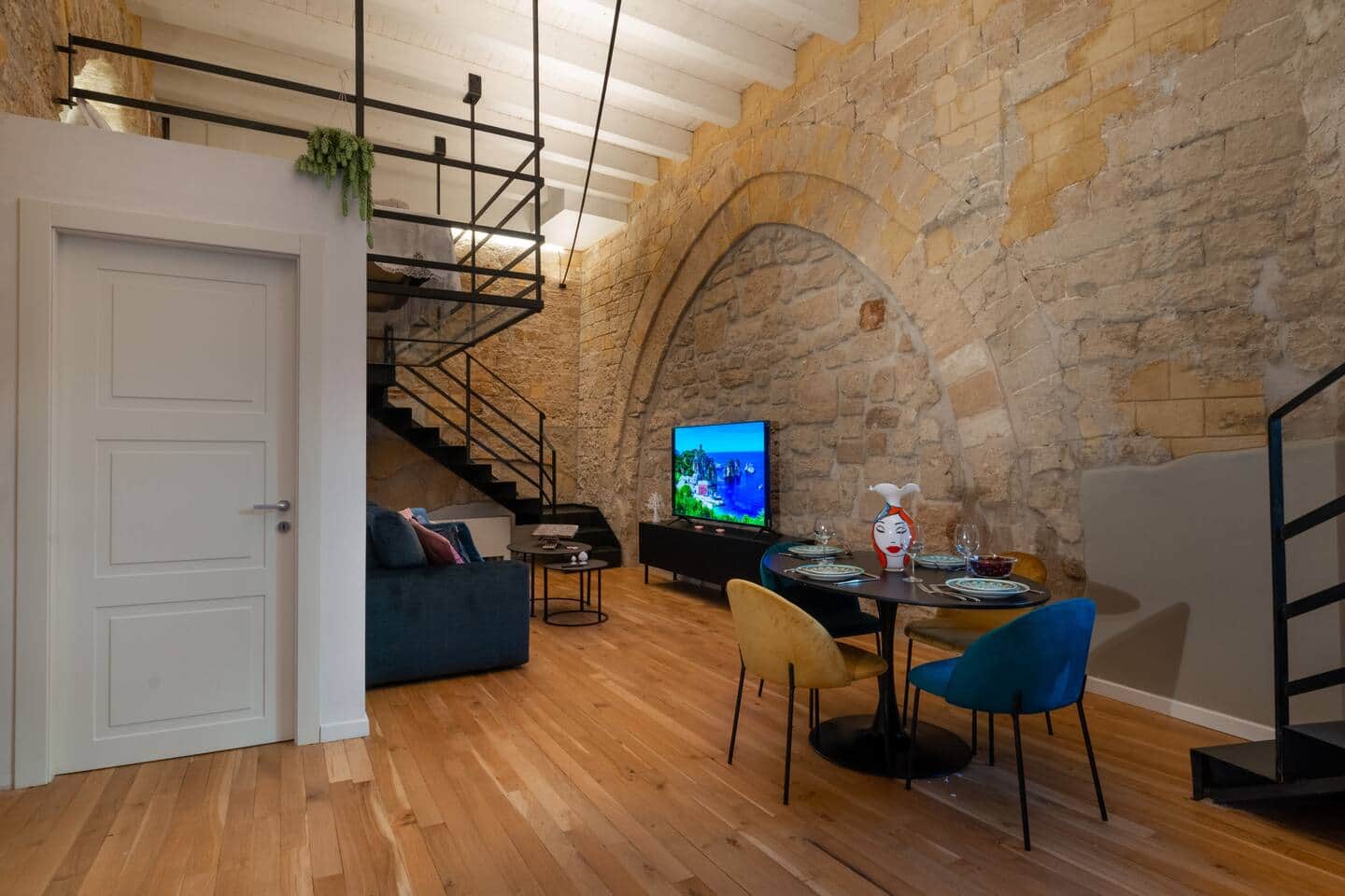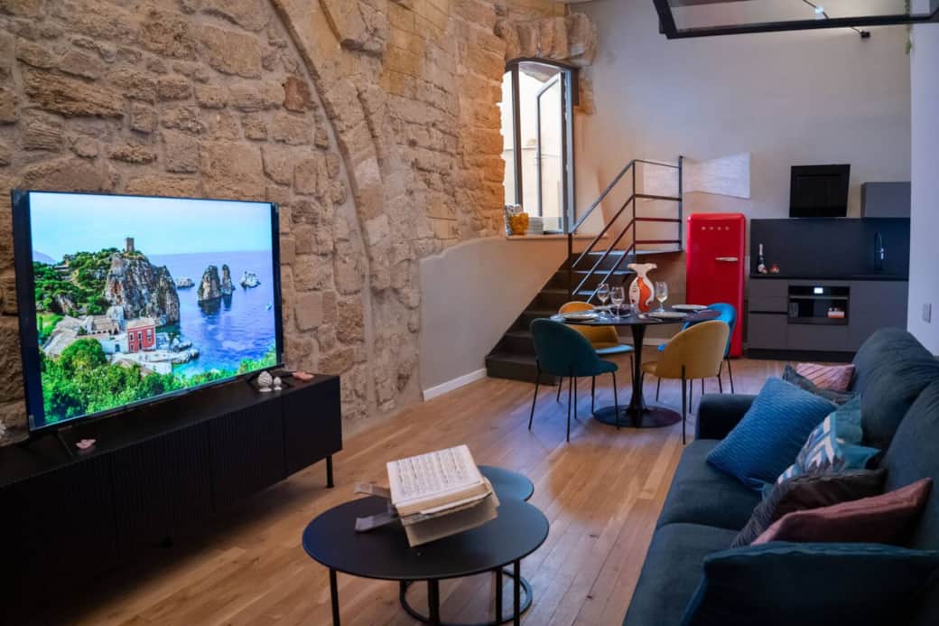 Siamo lieti di presentarvi questo affascinante appartamento che renderá speciale ed indimenticabile il vostro soggiorno a Palermo. The Ancient Arch é ubicato in una posizione invidiabile nel centro cittá, prospicente via Maqueda e a pochi passi dai Quattro Canti. La struttura si trova all’interno di uno storico palazzo risalente al Trecento che, giá dal vostro ingresso, vi permetterá di respirare un’atmosfera unica. Il nome dell’appartamento vuole rendere omaggio al magnifico arco incastonato nella grande parete in pietra che, siamo certi, catturerá la vostra attenzione appena entrati. Un ampio spazio, caldo ed invitante, vi accoglierá all’interno, caratterizzato da un arredamento in stile industriale con accessori di design e luci led di grande effetto: un angolo cucina elegante e funzionale, un frigorifero retró di indubbio fascino, un tavolo ovale con sedie colorate, e un ampio divano letto con un grande televisore di ultima generazione creano una suggestiva armonia tra antico e moderno. Un’elegante scala in ferro nero vi condurrá poi al soppalco dedicato allo spazio notte principale, dove un comodo letto matrimoniale vi permetterá di riposare tra il colore caldo dei muri in pietra e il bianco crema del tetto in legno. Al di sotto della zona notte, é stato ricavato un comodo bagno con tutto il necessario ed un ampio piano doccia. A rendere il vostro soggiorno ancora piú esclusivo, i nostri ospiti avranno a disposizione una meravigliosa terrazza privata, dove degustare colazioni ed aperitivi nel moderno divano sofa da esterni, o anche semplicemente godersi il meritato relax circondati dalle mura di questo incantevole palazzo. Ideale per coppie, amici e famiglie di 4 persone. INFORMAZIONI SUI PARCHEGGI NEL CENTRO STORICO DI PALERMO: L'appartamento si trova nel cuore del centro storico, dove le strade sono strette e c'è una zona ZTL (Zona a Traffico Limitato). È necessario acquistare un pass ZTL (5 € al giorno) per accedere al centro storico in auto. Se desiderate parcheggiare nel centro storico vicino all'appartamento, vi consigliamo di scegliere il parcheggio privato "A.Pagano" (Piazzetta del Parlatoio, 6, 90133 Palermo PA), che chiude alle 20 e riapre alle 7. Costa 15 € al giorno con pass ZTL acquistabile con sconto del 50% (2,5 €) direttamente al vostro arrivo al parcheggio (contanti o carta di credito/debito). Non è necessario acquistare un pass ZTL ogni giorno se non si utilizza l'auto, ma solo quando si esce e si rientra nel centro storico. In alternativa, è possibile parcheggiare l'auto nella zona circostante l'appartamento (verso il lato della cattedrale di Palermo), al di fuori della ZTL, e proseguire a piedi per raggiungere l'appartamento.